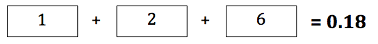 The original puzzles (found here) gives a series of one digit numbers and a sum, and asks the student to multiply the one digit numbers by 1, 10 or 100 to balance the equation. For example