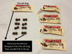 In Acts 1 & 2, students discover that the jar is filled using 5 bags of Whoppers: 4 of which were used in their entirety, and a fifth one that was only used in part. There are 19 whoppers per bag. The fifth bag had 16 whoppers leftover after being used.
