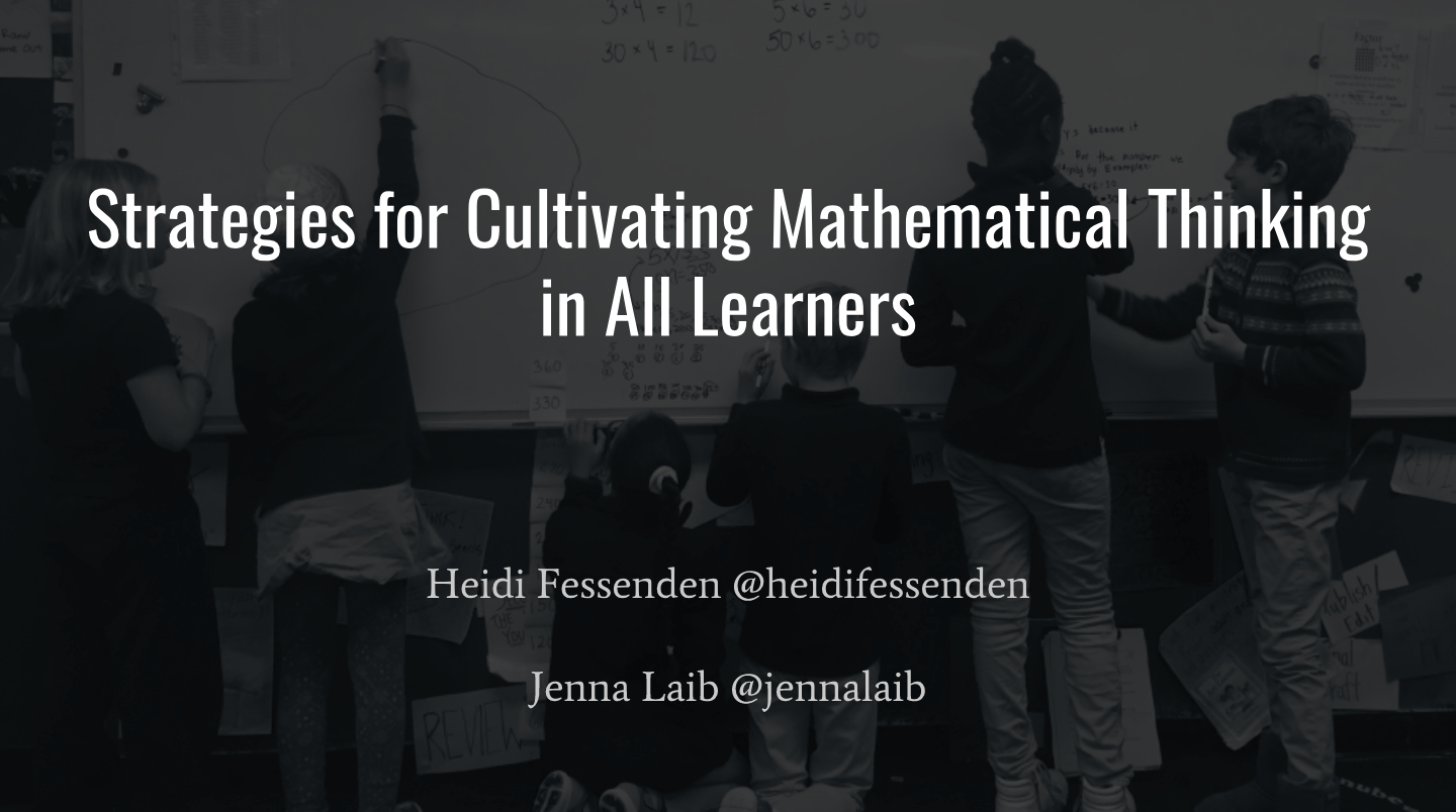 In early October, I presented at NCTM Hartford with the incomparable Heidi Fessenden (@heidifessenden / blog). Our session was called “Strategies for Cultivating Mathematical Thinking for All Learners.”