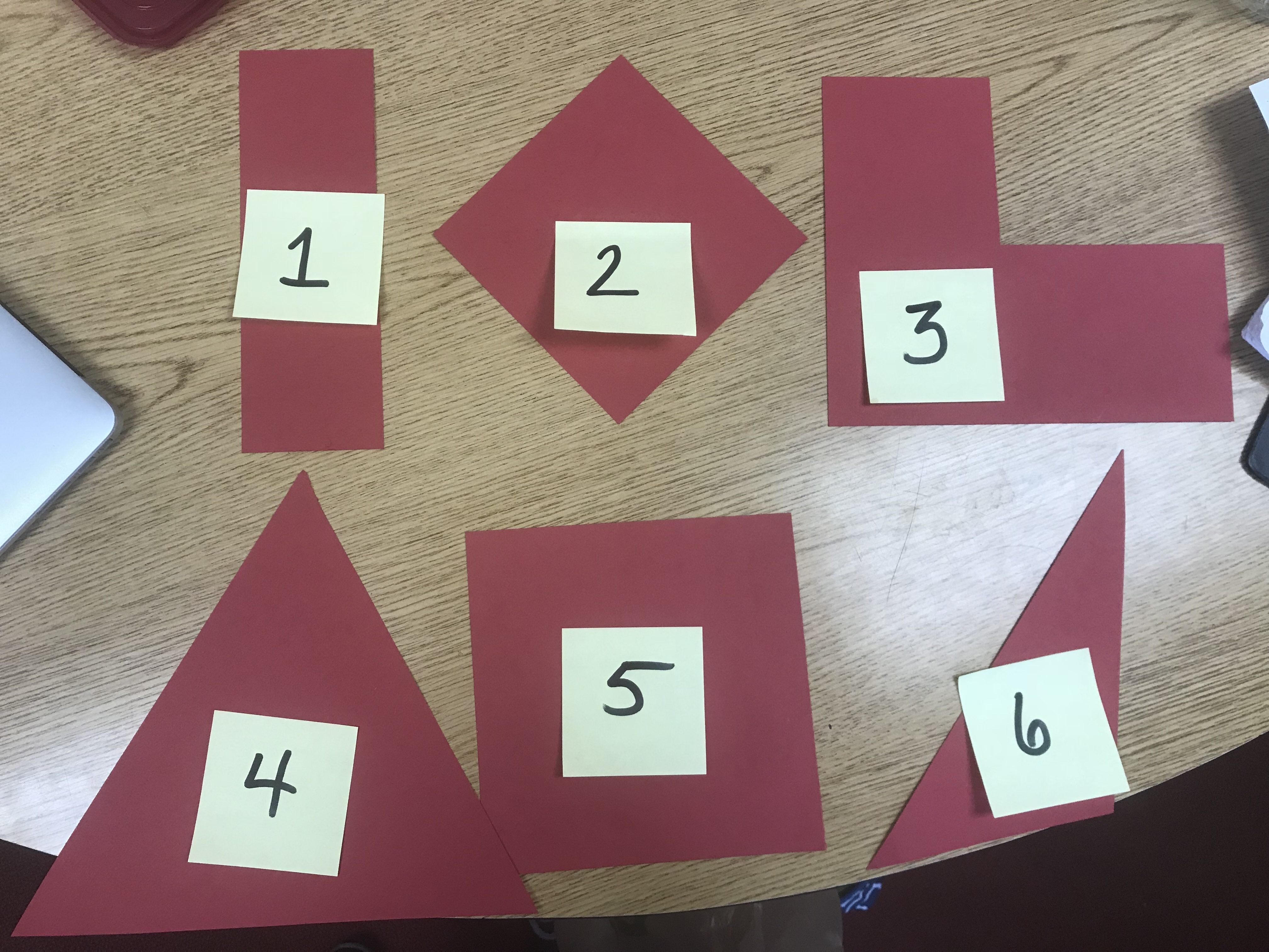 After exploring student understandings about shape during our Same or Difference activity — see blog post from 1.4.19 — Jessica and I prepared for the Shape Hunt. It’s based off a task by Illustrative Mathematics (from the current website, not the forthcoming elementary curriculum).