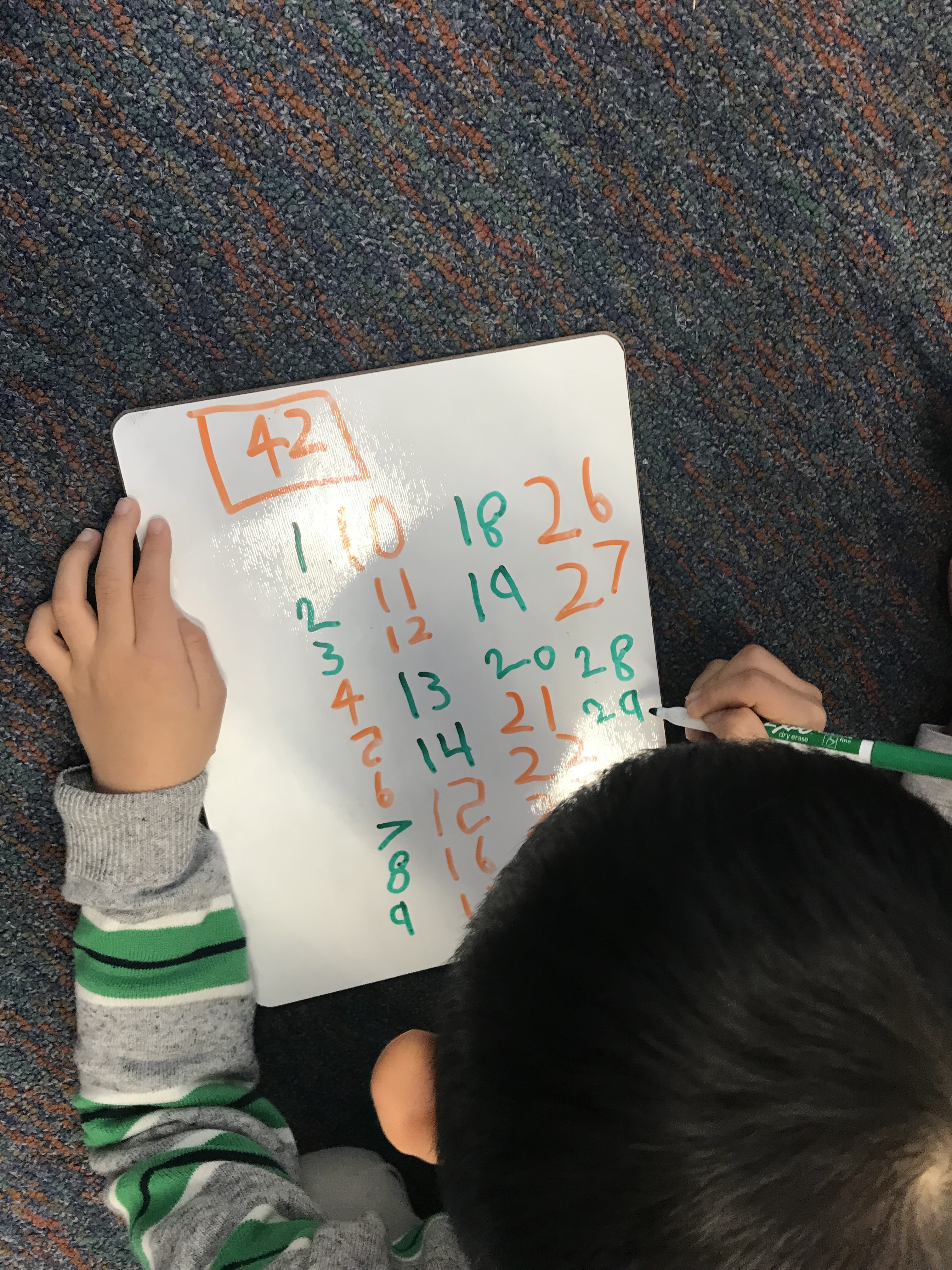 Students continued to play the game, choosing different targets. Some students even tried to write their own. Many that tried to write their own chose starting and ending numbers that were too far apart, requiring them to write 40 or 60 or 73 numbers! There’s a reason I always make the menu — at least the first few times.