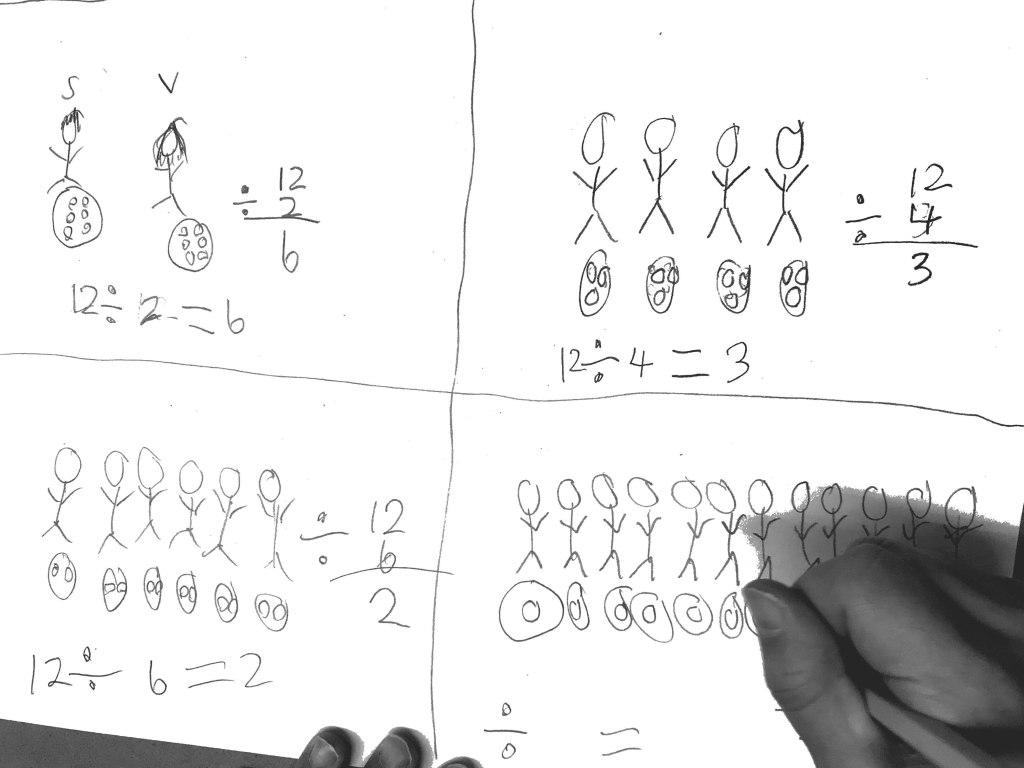 “You know, there’s another way to record this, without the fractions,” I started. “Cookies can be cut, but some things, like balloons, cannot be cut. So what if we had 12 balloons shared by 5 people? Everyone would get two… and then…?”