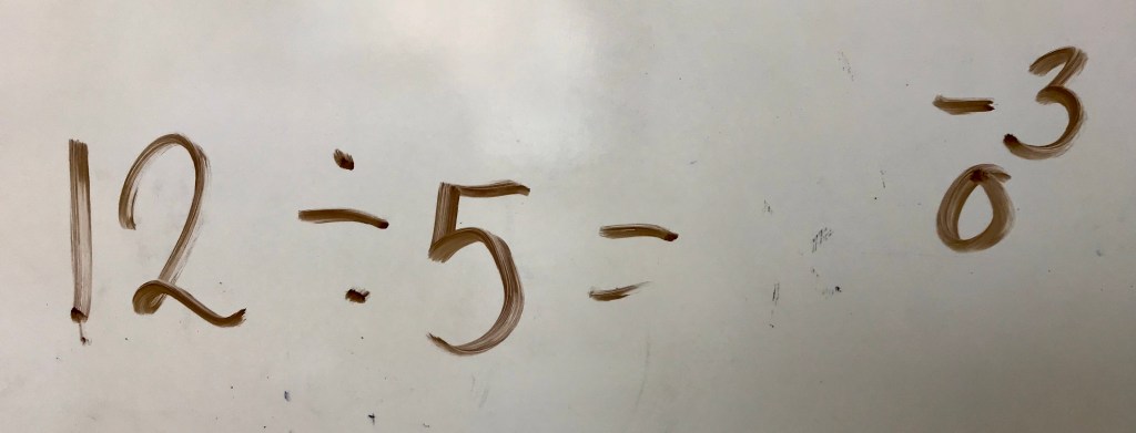 I saw several other students nod, and heard some murmurs of agreement, but the -3 camp was still holding out strong. We did not have any consensus about 12 ÷ 5.