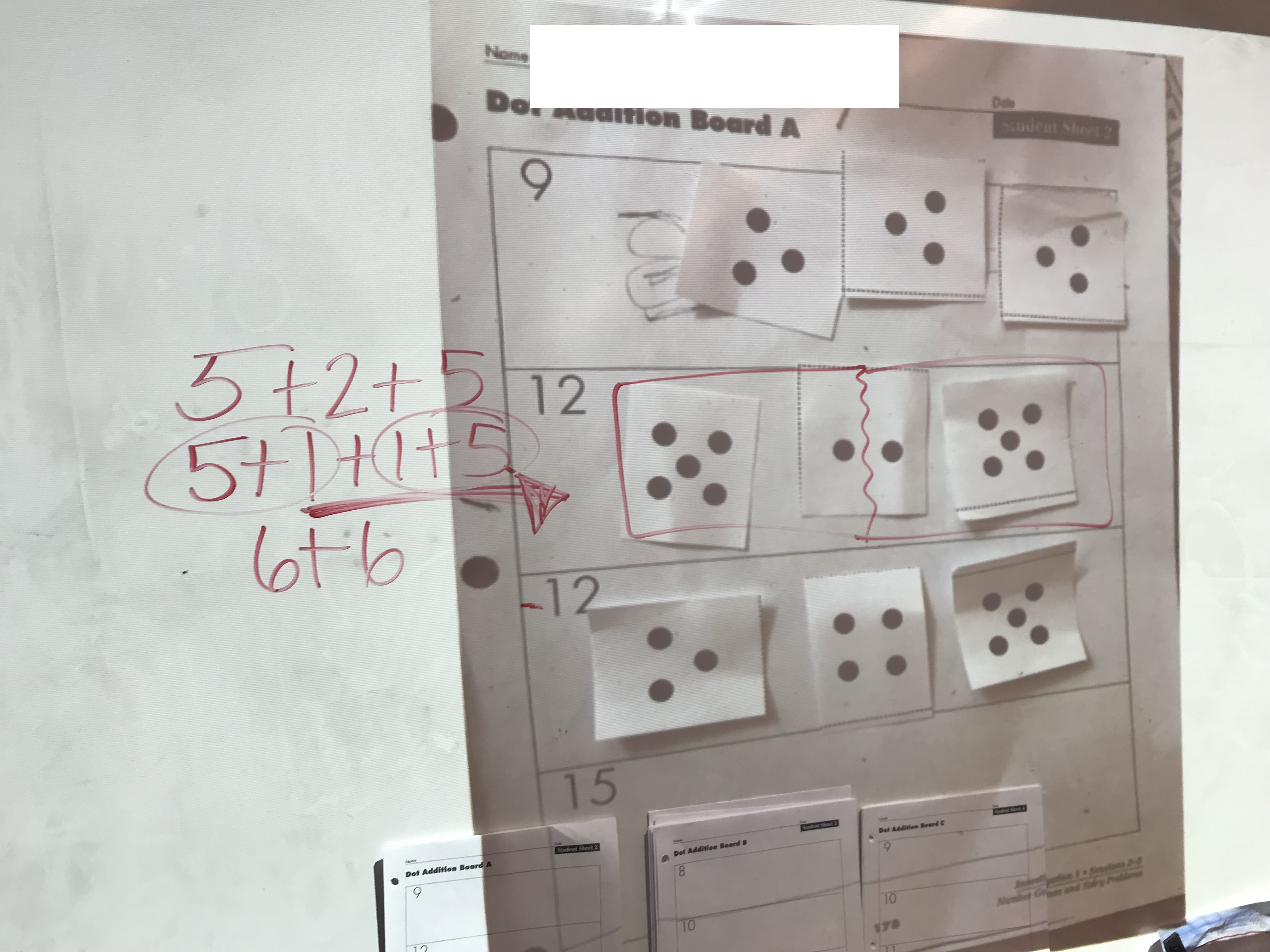 We closed with Jackson’s equations without dots. Many students were able to compose and decompose numbers fluidly during the discussion.