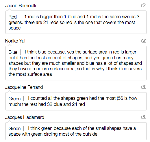 I also received live updates of which shape students covered more. I did not anticipate we would have consensus, but the level of disagreement excited me.