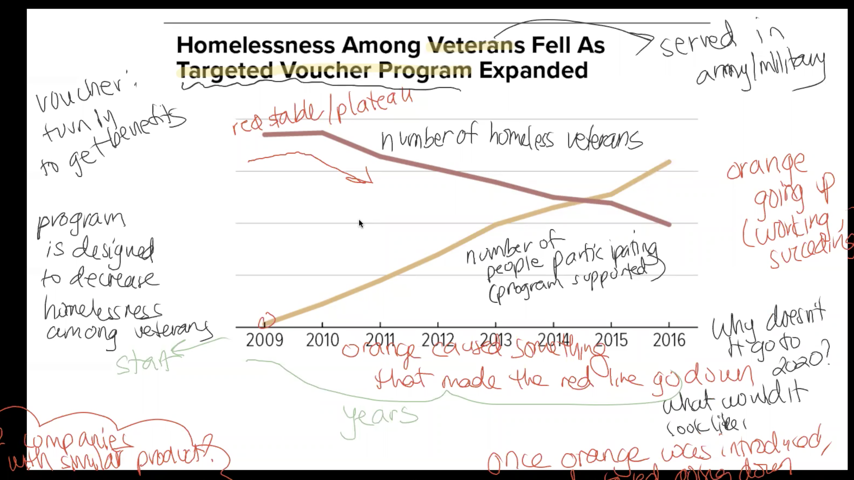 You can watch the students in the first period class wrestle with contextualizing and decontextualizing the number of homeless veterans in this video clip, as well as some potential actions.