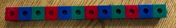 In the lesson to follow, Caitlin and I wanted to generate more thinking around the relationship between multiplication and division, which is why we came up with the “how many times does the R-G-Y-B pattern repeat” question. It also felt important to keep in mind: