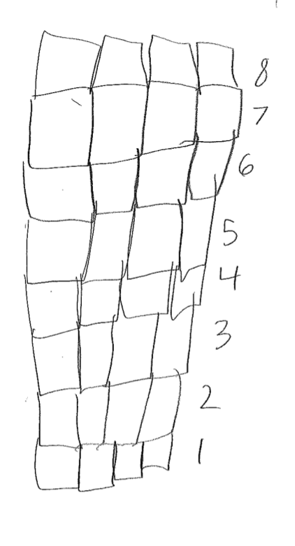 Aria drew the four boxes on the bottom layer. She continued to draw 4 boxes at a time, often individually, until she had drawn all 32 boxes.
