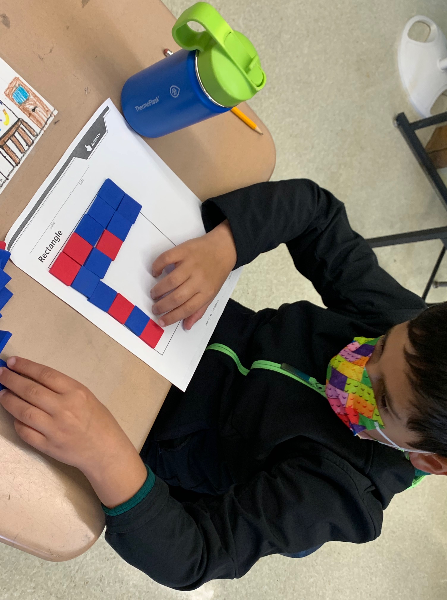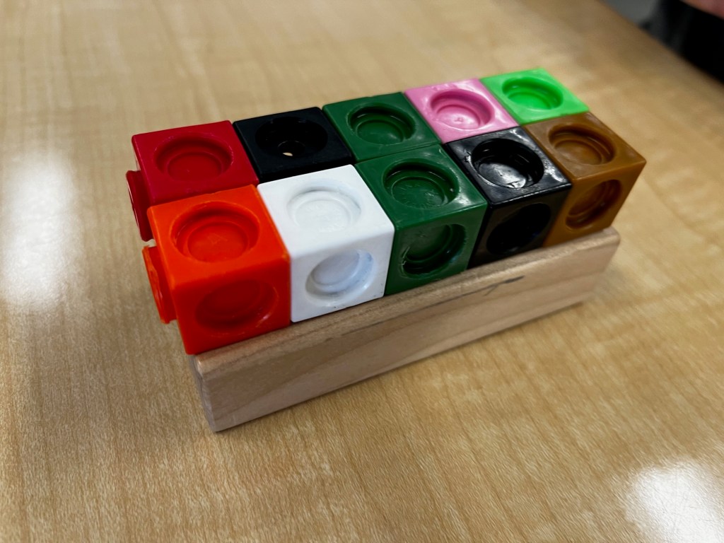 Then, they tried to build the blocks out of multilink cubes. (From TERC Investigations: Grade K, Unit 5, Lesson 1.7)