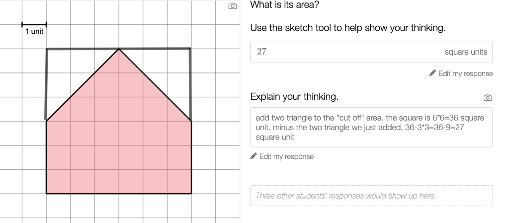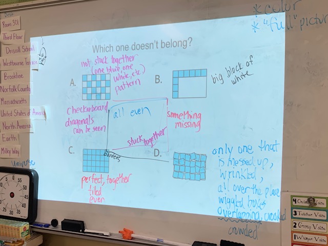 To launch a third grade lesson about area, we showed these four images to students and asked them “which one doesn’t belong?”