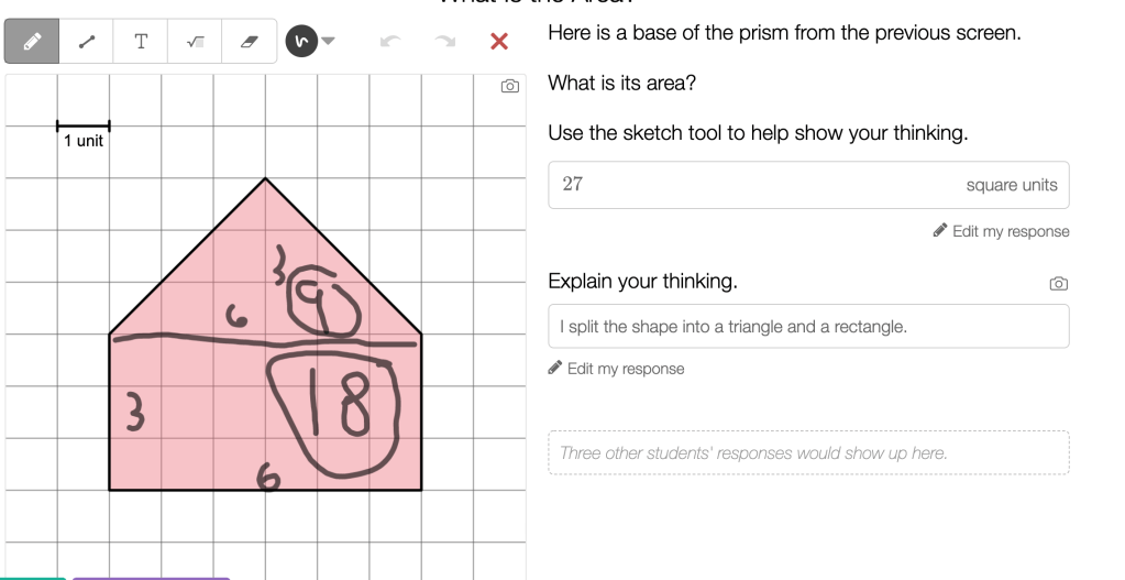From there, students discover how important it is to have square units tiling a space in order to measure area. This relates to the ‘perfectly packed’ units we will see in volume later.