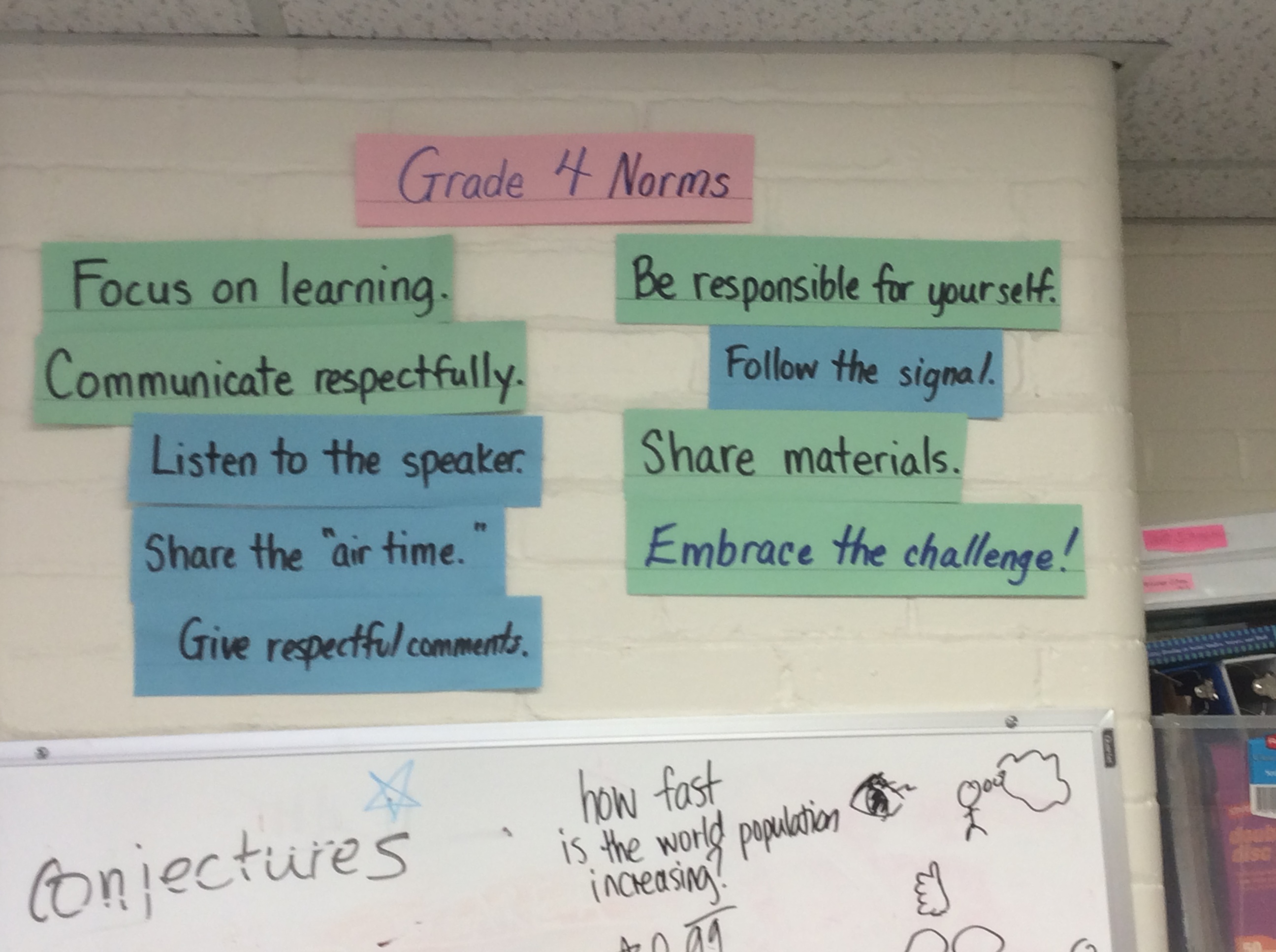 The title of this blog, Embrace the Challenge, came from a group of fourth graders a number of years ago. (They are now solidly halfway through high school.) We spent a day or two crafting norms for our class, and the above photo shows what they came up with.