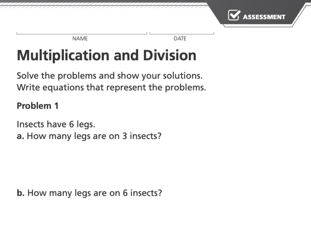 The Investigations Teachers Guide helpfully maps out mathematical benchmarks for students. The Insect Problem aligns with three of the benchmarks for this particular unit.