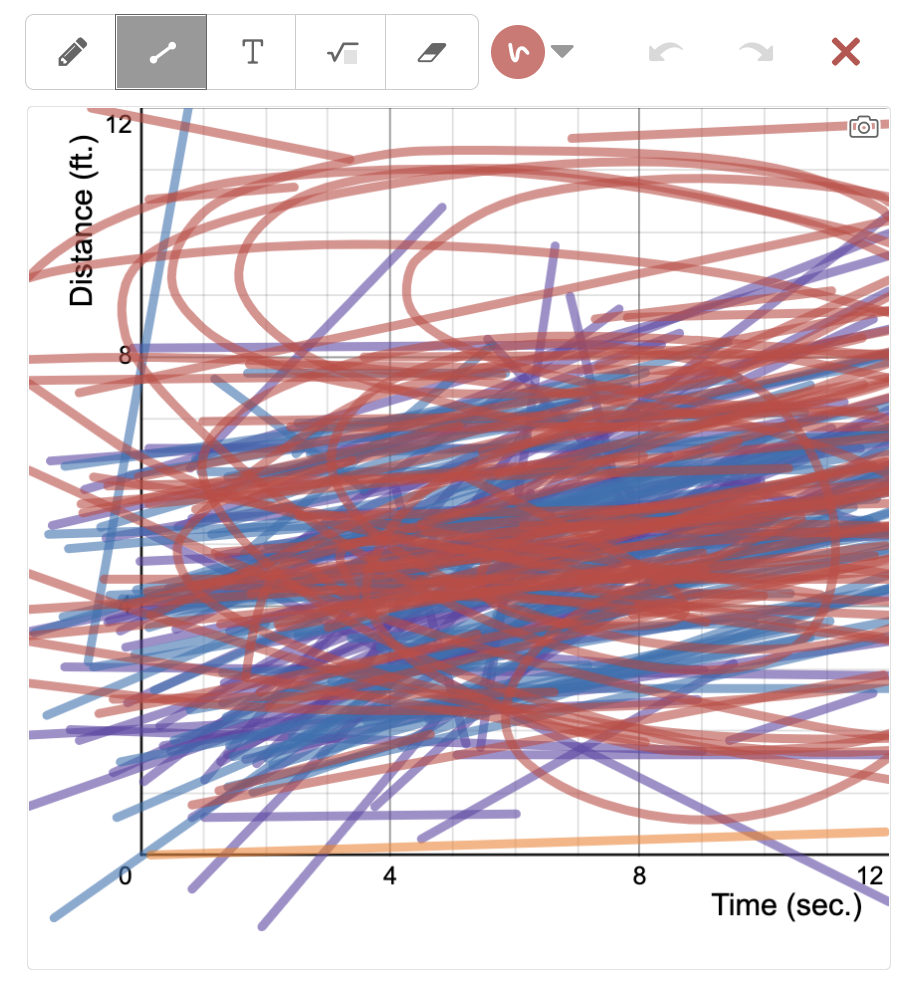 I throughly enjoyed the discourse around the different mathematical representations for the turtle time trials, and also the best was yet to come: creating their own lines. Students were asked to draw lines to represent four new turtles, racing along the same 12 foot path.