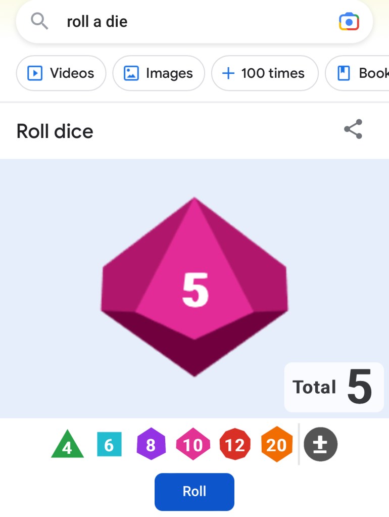 I pulled out my phone, googled “roll a die,” and selected the 10-sided one. I have used this before, with dramatic flourish, to announce the digits students need to place on the board. Like a madcap Bingo Caller.