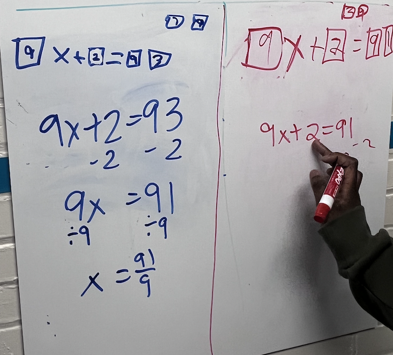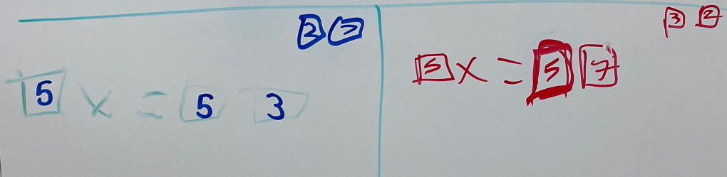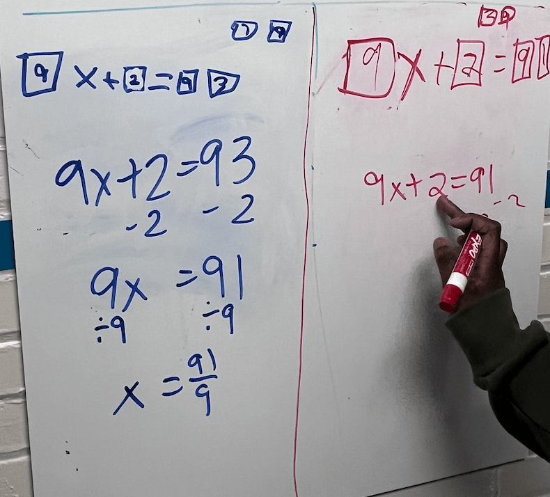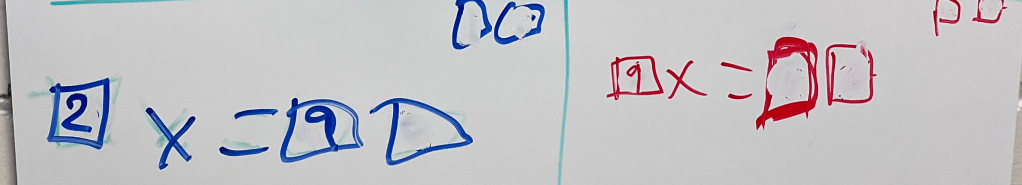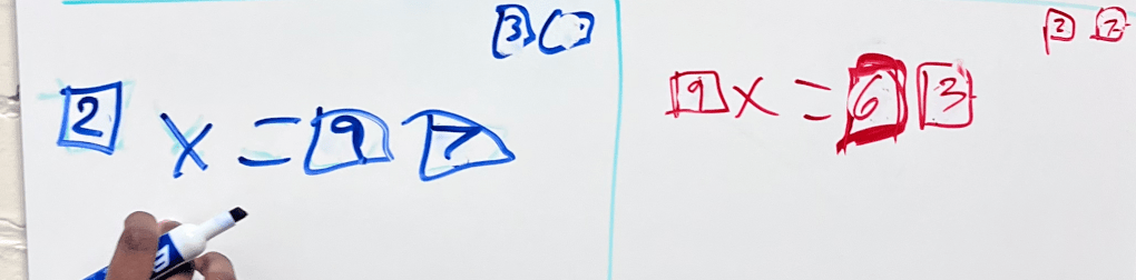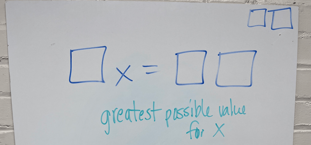 2x = 9 ❒, with two more throwaway boxes available. Inaya paused, and eventually placed it in the throwaway boxes. “I’m doing the opposite of Tamara,” she said crisply. “I want big numbers.”