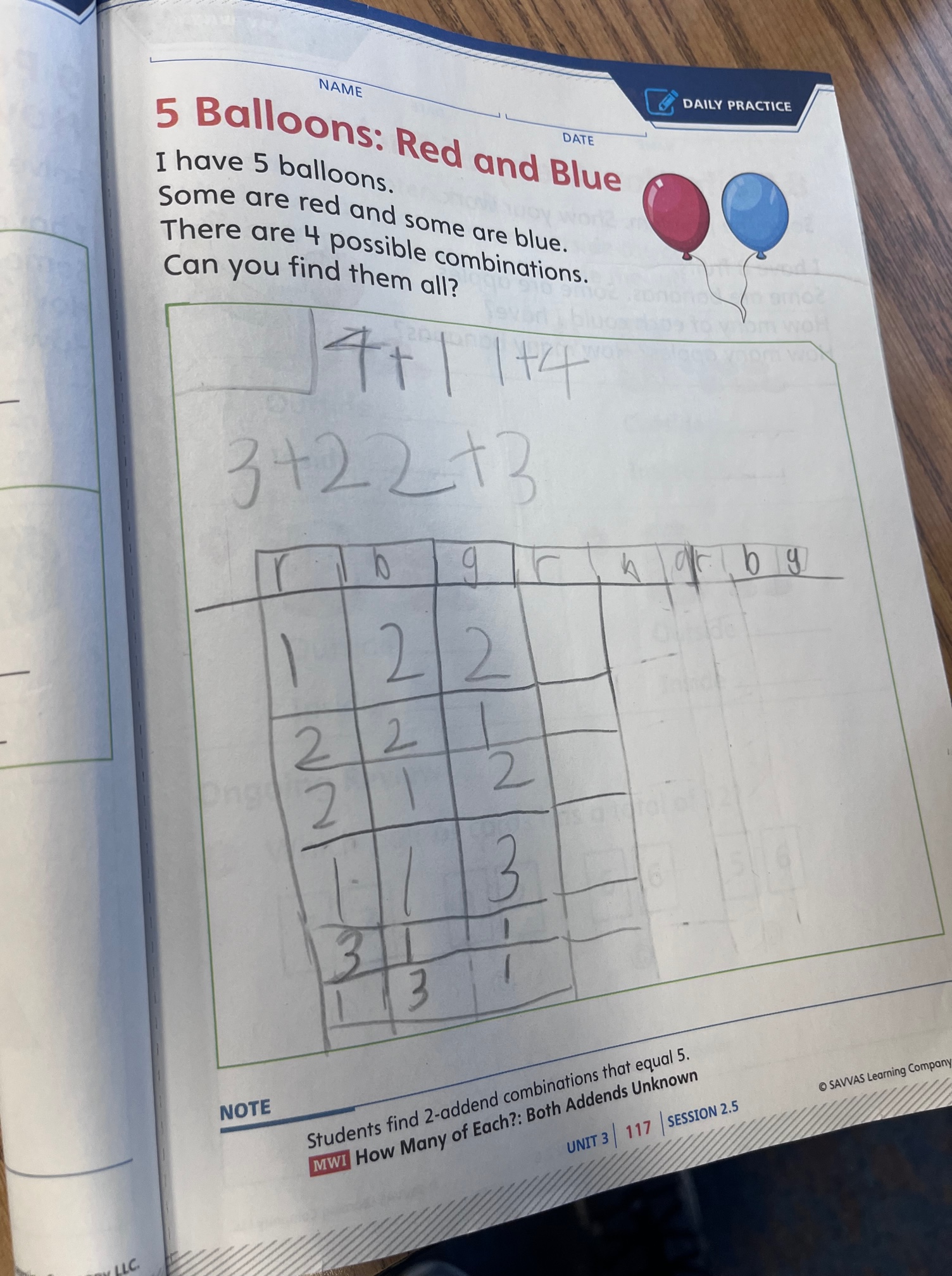 A few days later, I introduced the routine “Today’s Number” to students. I was pleasantly surprised to see one student organize his work like this.