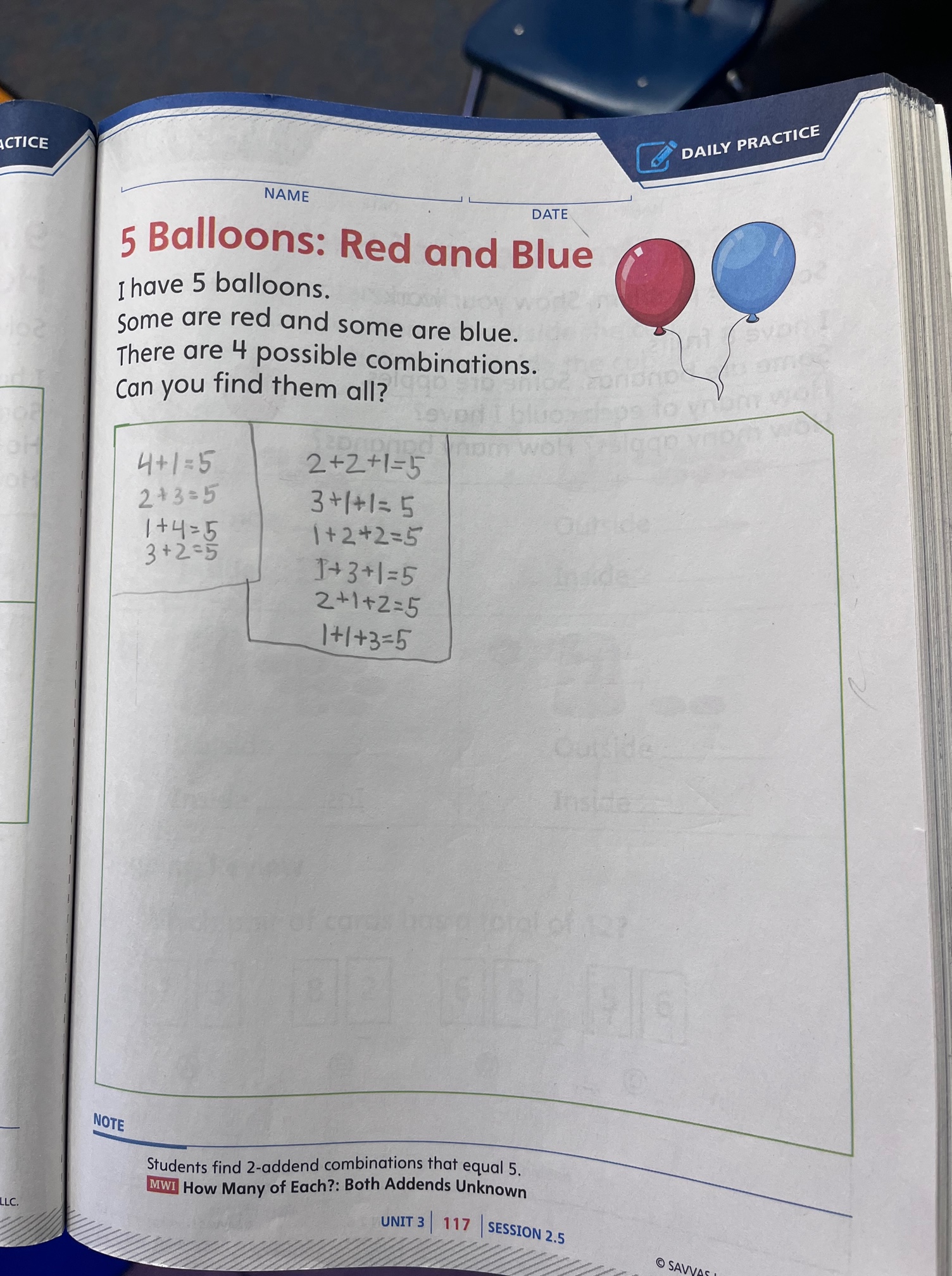 The next day, students solved a how many of each problem about balloons: