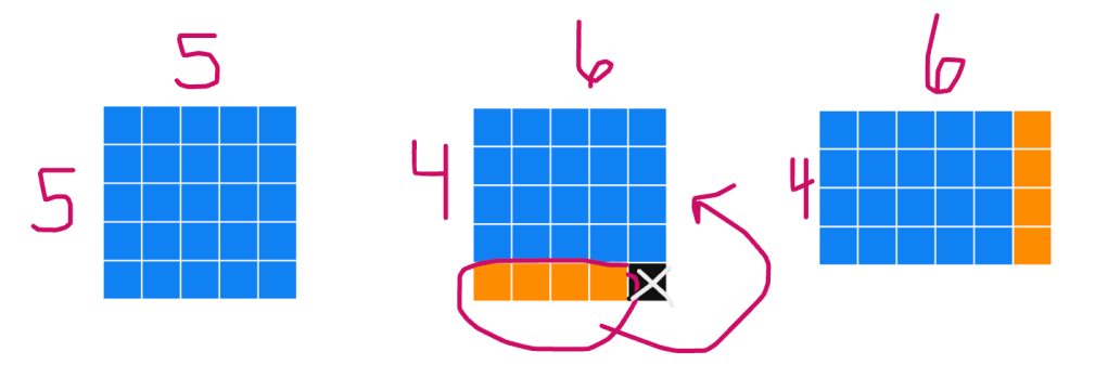 Upper elementary students will often stretch this thinking to multiplication. If 5 x 5 = 25, shouldn’t 4 x 6 = 25?