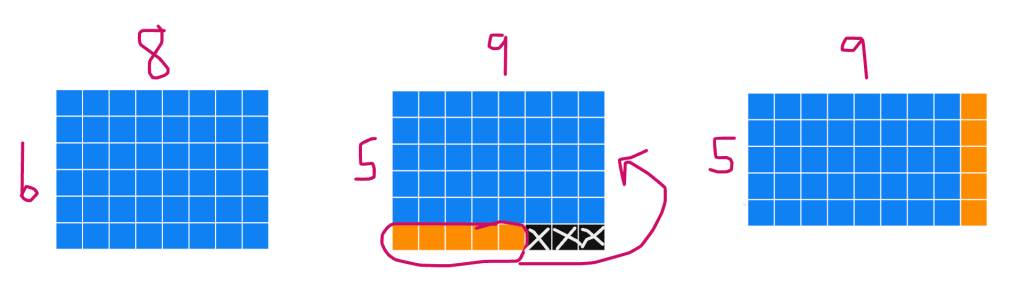 This will also hold true for numbers that aren’t square numbers. We could represent 8 x 6 as and 9 x 7 as