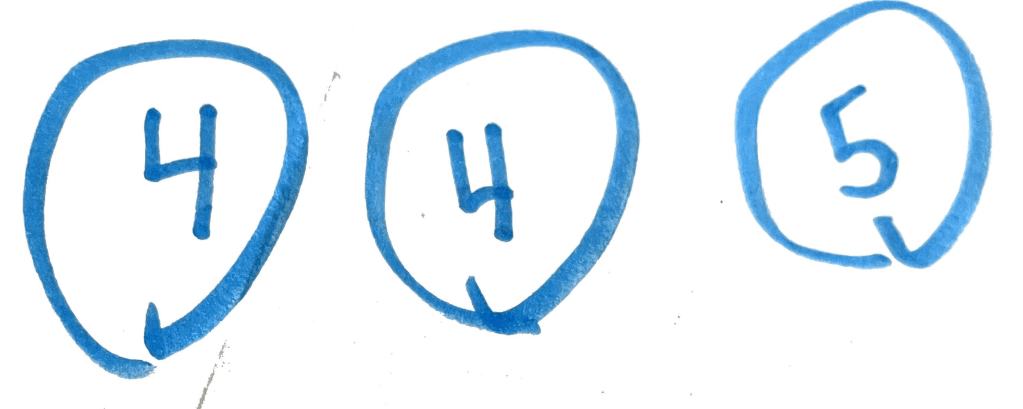 “Oh, I notice that the numbers you chose are next to one another,” I said. 6 + 7, 4 + 4 + 5… it was like she was trying to divide equally, but the primeness of the 13 just wouldn’t let her.
