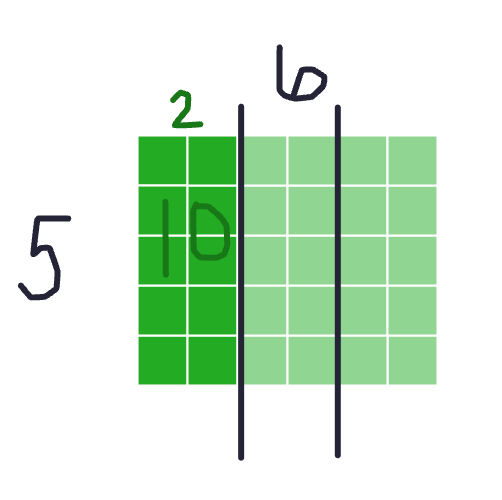 And then you partition the rectangle to show that 2 columns of 5 makes 10, and that that can be iterated throughout the array.