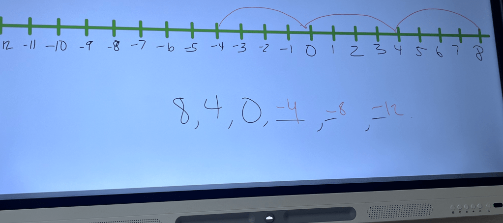 Today, I worked with an 8th grader on some additive patterns involving integers.