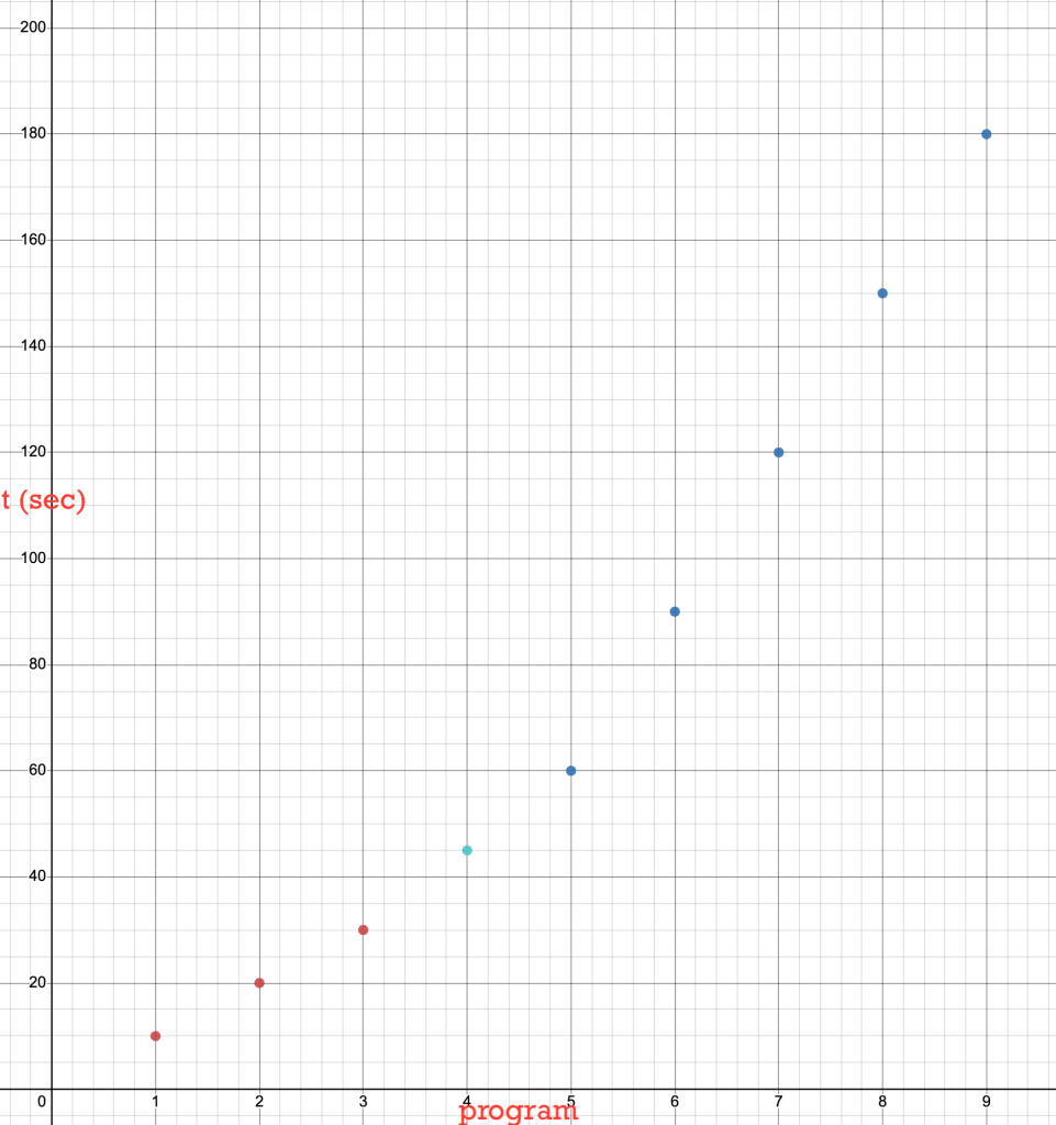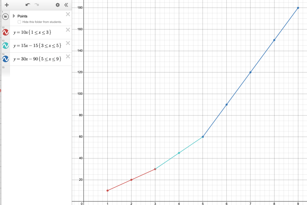 But not all patterns are so nice and linear. We could model the growth of time with a piecewise function.