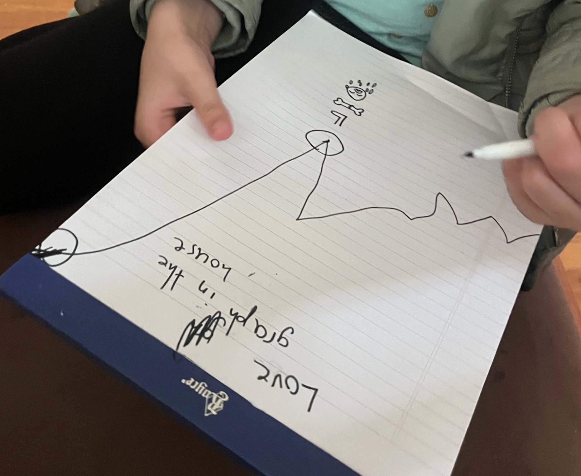 “And how about this part here? It doesn’t go up as fast, so the love slowed down,” S asked while circling and continuing to annotate.