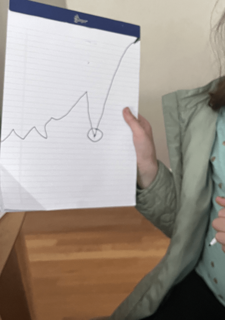 My 8yo daughter, S, held up a piece of paper with a jagged line drawn on it. “Mama. What do you notice? Do you see any high points? Or low points?”