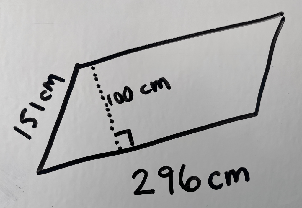 From there, I asked Tomás to find the area of some rectangles and parallelograms, including some off-the-grid, with a base or height that is a multiple of 10.