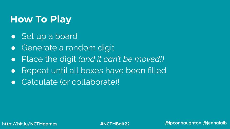 - Laib, Jenna. “One of My Favorite Games: Number Boxes.” May 29, 2019.