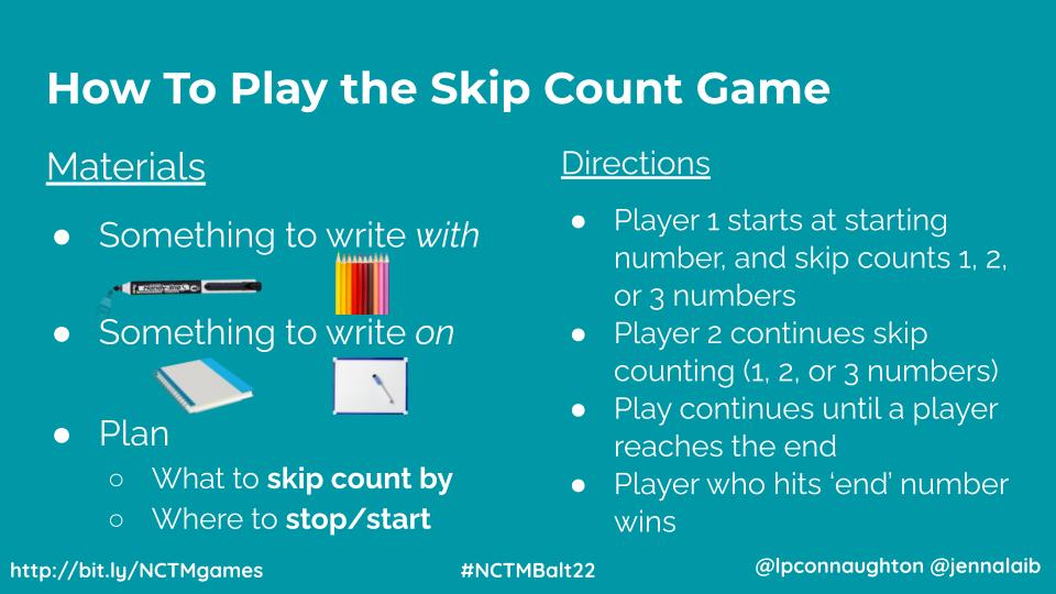 - Laib, Jenna. “One of My Favorite Games: The Skip Count Game.” May 30, 2019.